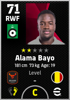 . Alama Bayo is a Right Wing Forward footballer from Belgium who plays for Brugge Gz in eFootball 2026.