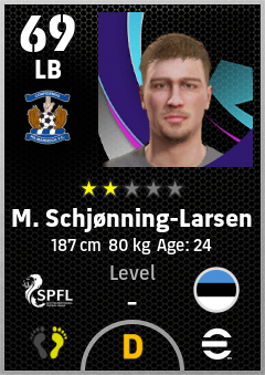 . M. Schjønning-Larsen is a Left Back footballer from Estonia who plays for Kilmarnock Fc in eFootball 2026.