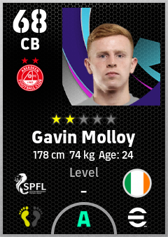 . Gavin Molloy is a Center Back footballer from Republic Of Ireland who plays for Aberdeen Fc in eFootball 2026.