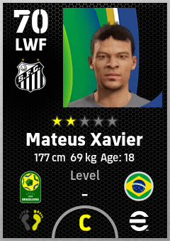 . Mateus Xavier is a Left Wing Forward footballer from Brazil who plays for Santos Fc in eFootball 2026.