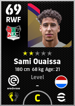 . Sami Ouaissa is a Right Wing Forward footballer from Netherlands who plays for N.e.c. Nijmegen in eFootball 2026.