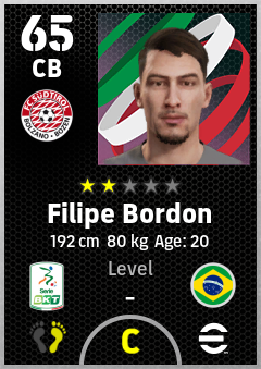 . Filipe Bordon is a Center Back footballer from Brazil who plays for Südtirol Br in eFootball 2026.