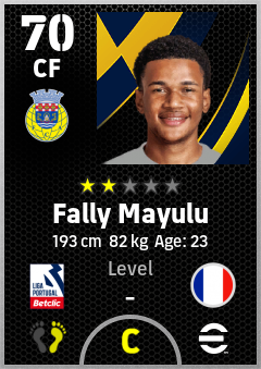 . Fally Mayulu is a Center Forward footballer from France who plays for Fc Arouca in eFootball 2026.