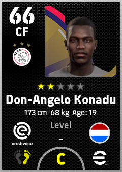 . Don-Angelo Konadu is a Center Forward footballer from Netherlands who plays for Ajax in eFootball 2026.