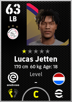 . Lucas Jetten is a Left Back footballer from Netherlands who plays for Ajax in eFootball 2026.