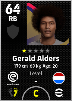 . Gerald Alders is a Right Back footballer from Netherlands who plays for Telstar in eFootball 2026.