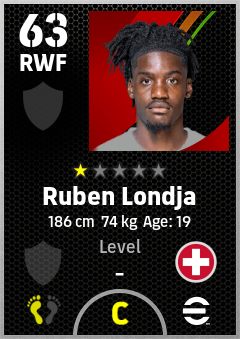 . Ruben Londja is a Right Wing Forward footballer from Switzerland who plays for Free in eFootball 2026.