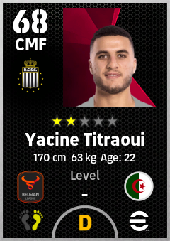 . Yacine Titraoui is a Center Midfielder footballer from Algeria who plays for Charleroi Zw in eFootball 2026.