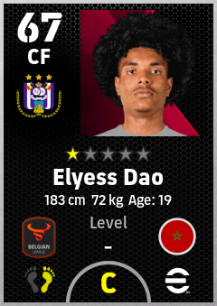 . Elyess Dao is a Center Forward footballer from Morocco who plays for Anderlecht Pw in eFootball 2026.