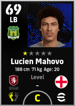 . Lucien Mahovo is a Left Back footballer from England who plays for Norwich Yg in eFootball 2026.
