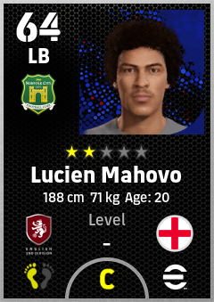 . Lucien Mahovo is a Left Back footballer from England who plays for Norwich Yg in eFootball 2026.