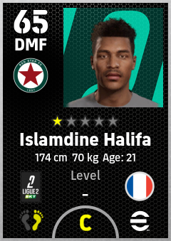 . Islamdine Halifa is a Defensive Midfielder footballer from France who plays for Red Star Fc in eFootball 2026.