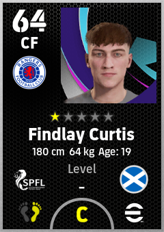 . Findlay Curtis is a Center Forward footballer from Scotland who plays for Rangers Fc in eFootball 2026.