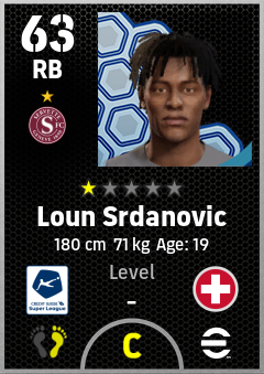 . Loun Srdanovic is a Right Back footballer from Switzerland who plays for Servette R in eFootball 2026.