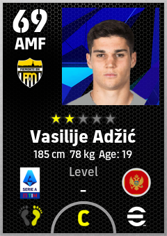 . Vasilije Adžić is a Attacking Midfielder footballer from Montenegro who plays for Piemonte Bn in eFootball 2026.