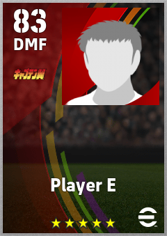 . Player E is a Defensive Midfielder footballer from Japan who plays for Wakabayashi Team in eFootball 2026.