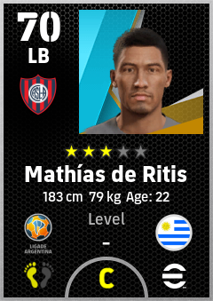 . Mathías De Ritis is a Left Back footballer from Uruguay who plays for Almagro Ar in eFootball 2026.