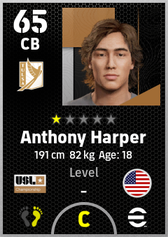 . Anthony Harper is a Center Back footballer from United States who plays for Fc Tulsa in eFootball 2026.