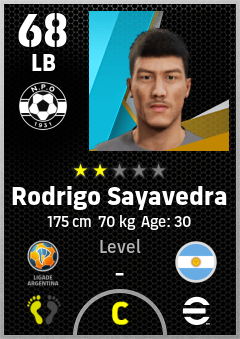. Rodrigo Sayavedra is a Left Back footballer from Argentina who plays for Nueva Pompeya Nb in eFootball 2026.