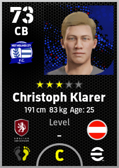 . Christoph Klarer is a Center Back footballer from Austria who plays for Birmingham B in eFootball 2026.