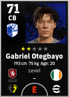 . Gabriel Otegbayo is a Center Back footballer from Republic Of Ireland who plays for Sheffield Bw in eFootball 2026.