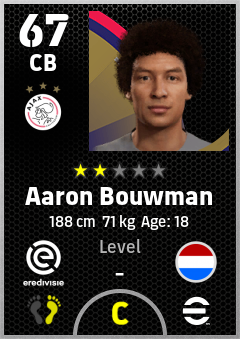 . Aaron Bouwman is a Center Back footballer from Netherlands who plays for Ajax in eFootball 2026.
