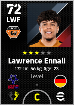 . Lawrence Ennali is a Left Wing Forward footballer from Germany who plays for Houston O in eFootball 2026.