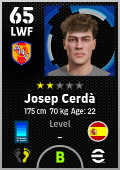 . Josep Cerdà is a Left Wing Forward footballer from Spain who plays for Andorra La Vella Aar in eFootball 2026.