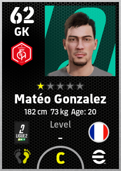 . Matéo Gonzalez is a Goalkeeper footballer from France who plays for Fc Annecy in eFootball 2026.
