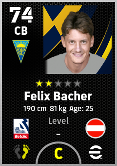 . Felix Bacher is a Center Back footballer from Austria who plays for Gd Estoril Praia in eFootball 2026.