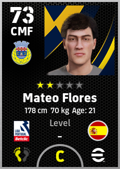 . Mateo Flores is a Center Midfielder footballer from Spain who plays for Fc Arouca in eFootball 2026.