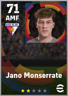 . Jano Monserrate is a Attacking Midfielder footballer from Spain who plays for Madrid Rosas Rb in eFootball 2026.