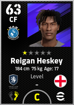 . Reigan Heskey is a Center Forward footballer from England who plays for Manchester B in eFootball 2026.