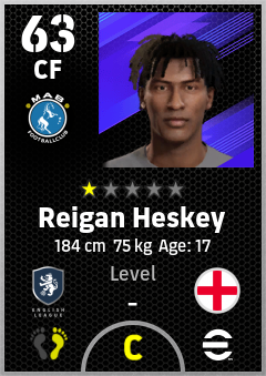. Reigan Heskey is a Center Forward footballer from England who plays for Manchester B in eFootball 2026.