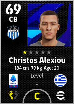 . Christos Alexiou is a Center Back footballer from Greece who plays for Internazionale Milano in eFootball 2026.