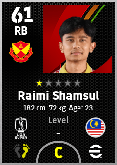 . Raimi Shamsul is a Right Back footballer from Malaysia who plays for Selangor Fc in eFootball 2026.