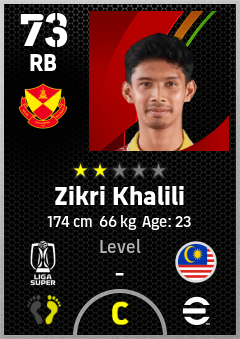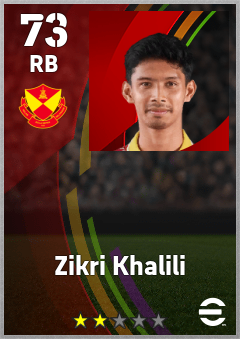 . Zikri Khalili is a Right Back footballer from Malaysia who plays for Selangor Fc in eFootball 2026.