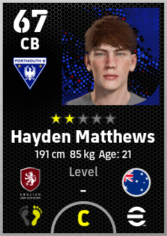 . Hayden Matthews is a Center Back footballer from Australia who plays for Portsmouth B in eFootball 2026.