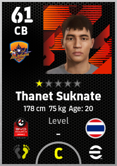 . Thanet Suknate is a Center Back footballer from Thailand who plays for Ayutthaya United Fc in eFootball 2026.
