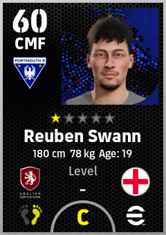 . Reuben Swann is a Center Midfielder footballer from England who plays for Portsmouth B in eFootball 2026.