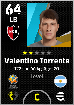 . Valentino Torrente is a Left Back footballer from Argentina who plays for Rosario Rn in eFootball 2026.