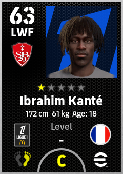 . Ibrahim Kanté is a Left Wing Forward footballer from France who plays for Stade Brestois 29 in eFootball 2026.