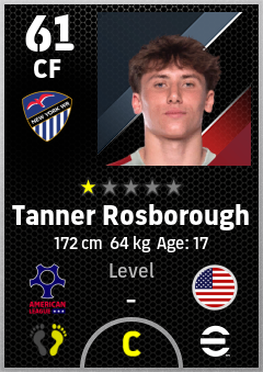 . Tanner Rosborough is a Center Forward footballer from United States who plays for New York Wr in eFootball 2026.