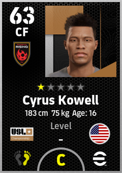 . Cyrus Kowell is a Center Forward footballer from United States who plays for Phoenix Rising Fc in eFootball 2026.