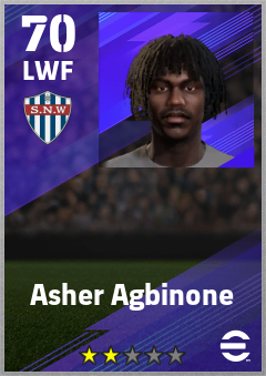 . Asher Agbinone is a Left Wing Forward footballer from England who plays for Crystal Palace Rb in eFootball 2026.