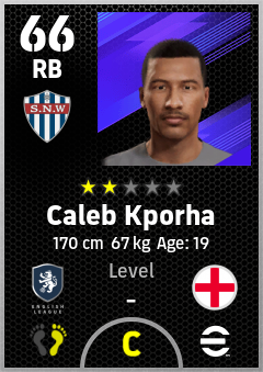 . Caleb Kporha is a Right Back footballer from England who plays for Crystal Palace Rb in eFootball 2026.