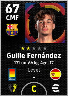 . Guille Fernández is a Center Midfielder footballer from Spain who plays for Fc Barcelona in eFootball 2026.
