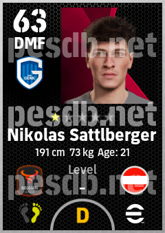 . Nikolas Sattlberger is a Defensive Midfielder footballer from Austria who plays for Genk Bw in eFootball 2026.