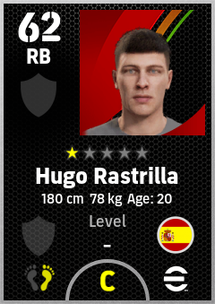 . Hugo Rastrilla is a Right Back footballer from Spain who plays for Free in eFootball 2026.