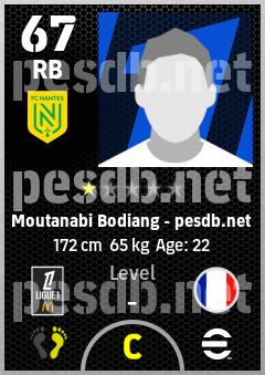 . Moutanabi Bodiang is a Right Back footballer from France who plays for Fc Nantes in eFootball 2026.